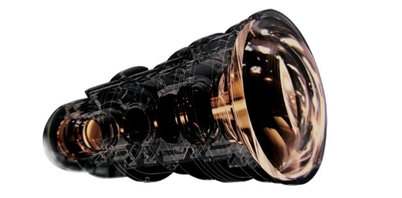 In our top two models, the TXF-2800 and TXF-4200, the light coming from the BLU-Escent module ends up passing through an advanced high-contrast optical block developed specifically for this new projector line. Here, a fresh approach was applied to the required prism polarization, which allows the projector to more effectively use the green light component. Green is a major contributor to perceived brightness, so this contributes about a 10% increase in optical efficiency that helps the projectors reach as high as 3,300 ANSI lumens in the TXF-4200. A new optical device in the light path also helps to eliminate stray light in the optical block to further create ultra-deep blacks. When coupled with dynamic control of the laser, all the new D-ILA projectors are able to claim infinity:1 dynamic contrast during black transitions inter-scene.